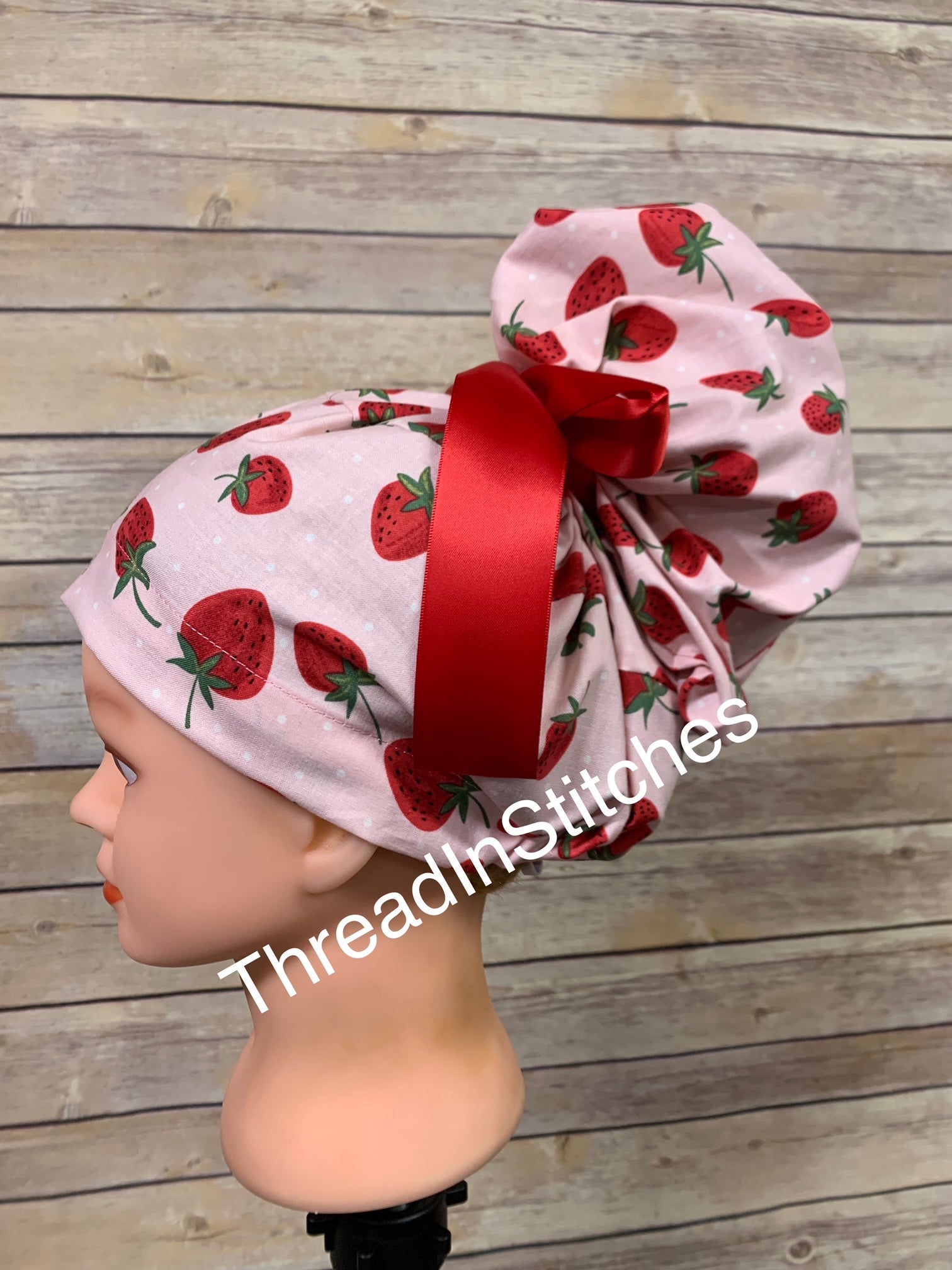 This is a 100% cotton handmade HIGH BUN scrub cap