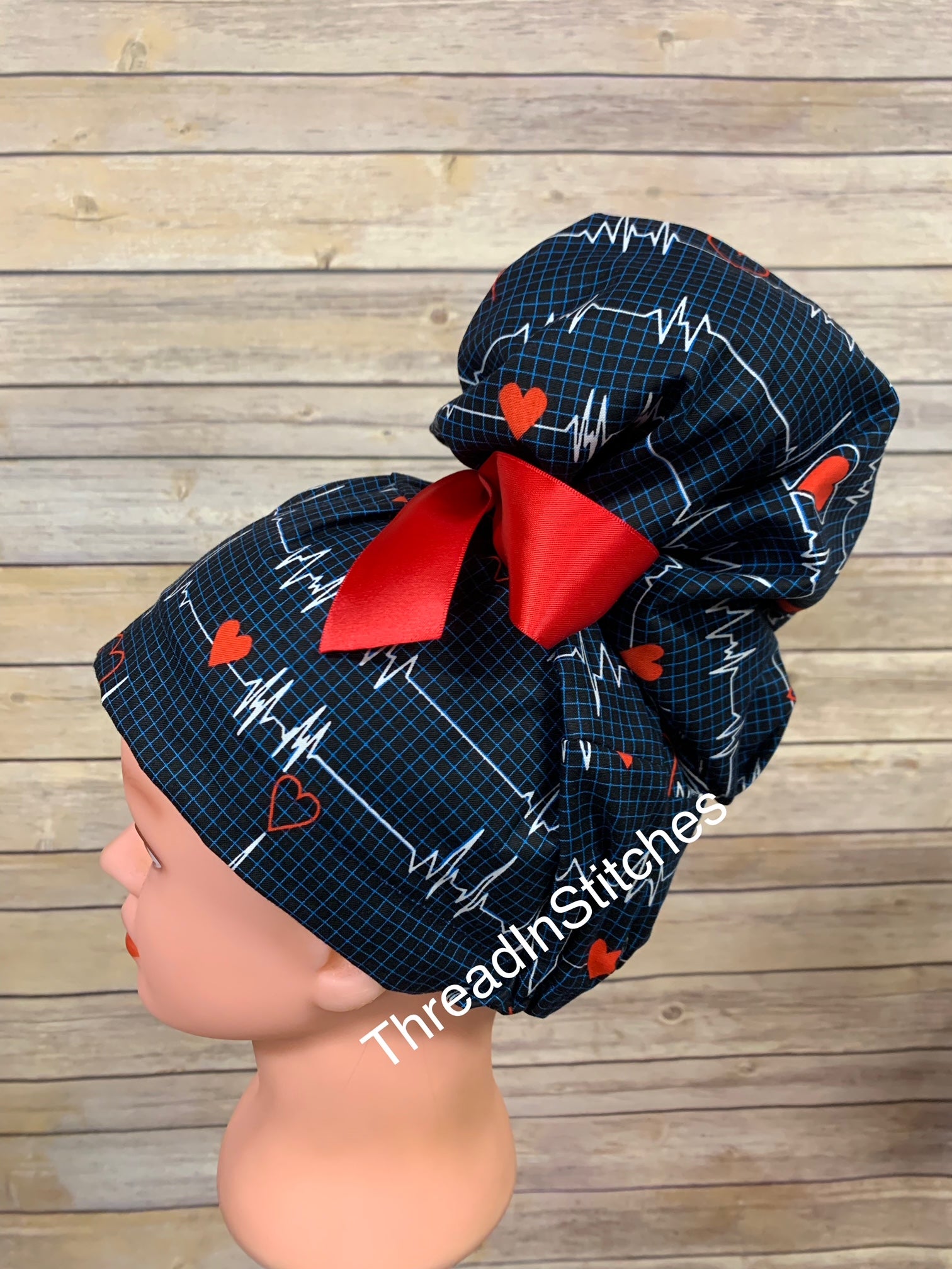 This is a 100% cotton handmade HIGH BUN scrub cap
